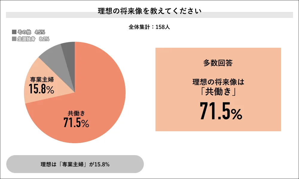 女性は共働きを希望する人が71.5%