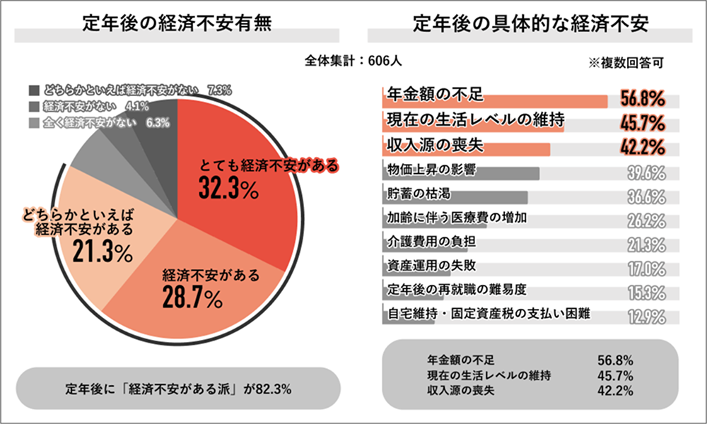 Job総研の『2024年定年に関する意識調査』で定年後の経済不安について聞くと「経済的な不安がある」と回答したのは82.3%でした。