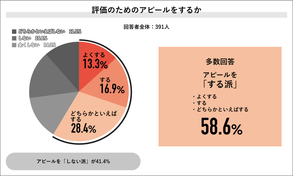 2025年のJob総研の調査では、社会人の約6割が「評価のためにアピールをしている」と回答しました。